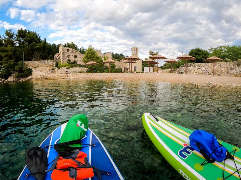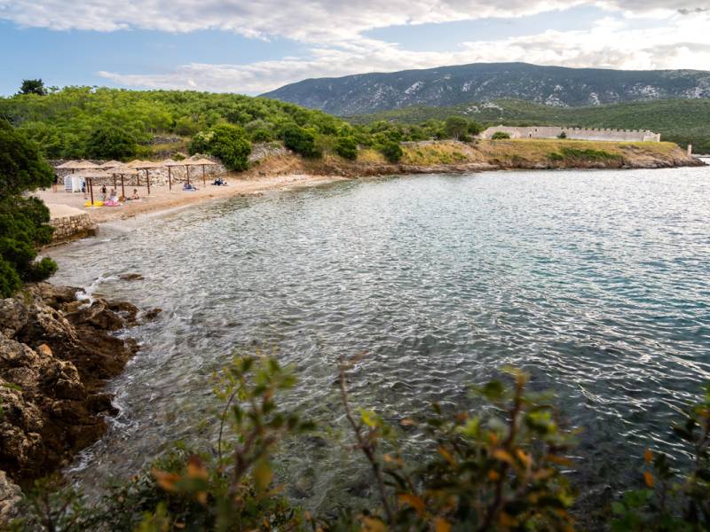 Plaża to głównie skaliste i kamieniste zatoczki, między którymi można znaleźć spokojne miejsca do opalania i kąpieli. Dzięki nieregularnej linii brzegowej i krystalicznie czystej wodzie, to idealne miejsce do snorkelingu, kajakowania lub pływania SUPem.