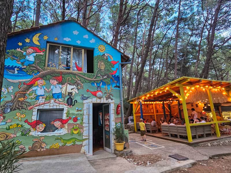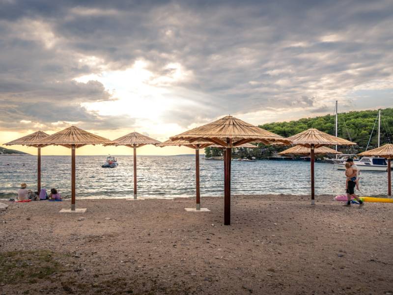 Tak wspominaliśmy wcześniej – to niewielki kemping. Nie ma tu basenu czy ogromnych terenów sportowych, ale jest boisko do siatkówki plażowej i koszykówki, stoły do ping ponga, plac zabaw i animacje dla dzieci i dorosłych tj. zajęcia muzyczne, plastyczne, artystyczne czy rozgrywki sportowe. Na terenie campingu działa sklep spożywczy, stoisko z owocami, piekarnia, a także mobilne stoisko ze świeżymi rybami i snack bar. Na wakacje możecie zabrać również psa – zarówno na parcelę jak i do domku. W pobliskim Nerezine możecie wynająć kajaki czy popływać na windsurfingu.