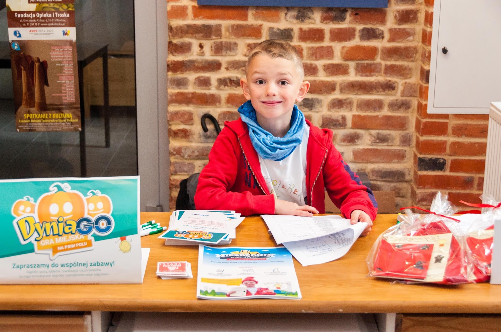 Grę miejską dla mieszkańców wrocławskiej dzielnicy Psie Pole przygotowaliśmy we współpracy z dyrekcją Szkoły i Przedszkola Marco Polo we Wrocławiu. Gra odbyła się w ramach Festiwalu Święto Dyni. Dzień gry zaczęliśmy wcześnie rano. Na całej trasie gry rozsypaliśmy 2000 małych, szczerzących się dyniek. Wcześniej ostrzegliśmy nasze Drużyny, że te złośliwe dyńki sporo namieszają w naszej grze. I tak się stało 😉
