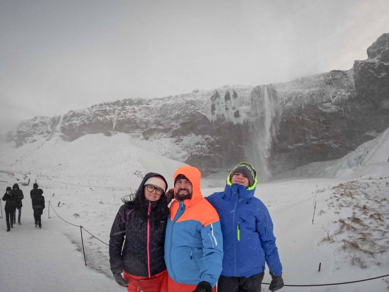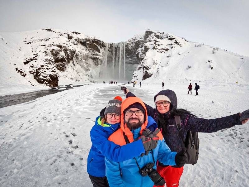 Pierwszy przystanek to Skógafoss, jeden z najbardziej widowiskowych wodospadów na Islandii, położony w miejscowości Skógar.