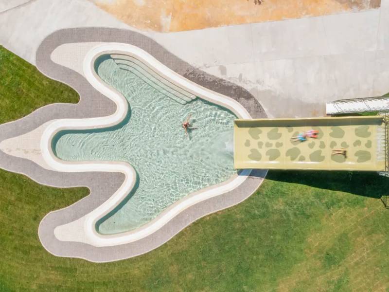 - Krótki opis: Innowacyjny kemping łączący naturę z technologią. Atrakcją numer jeden jest basen w kształcie dinozaura (Paleo Park).