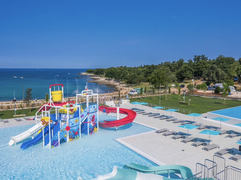 Krótki opis: Jeden z największych kempingów na Istrii, słynący z nowej strefy basenowej z dużym statkiem pirackim, który jest hitem wśród kilkulatków.