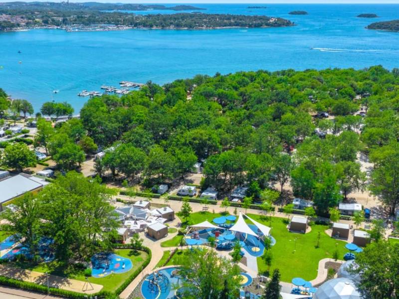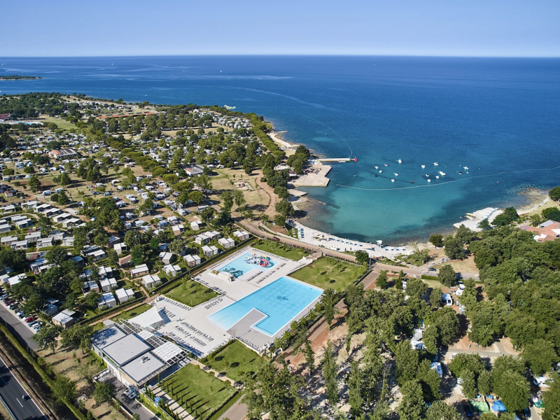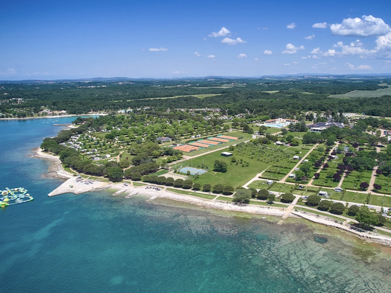 Krótki opis: Duży kemping z widokiem na wyspy Brijuni. Oferuje trzy kompleksy basenowe, park linowy (dodatkowo płatny) i bardzo bogaty program animacji.