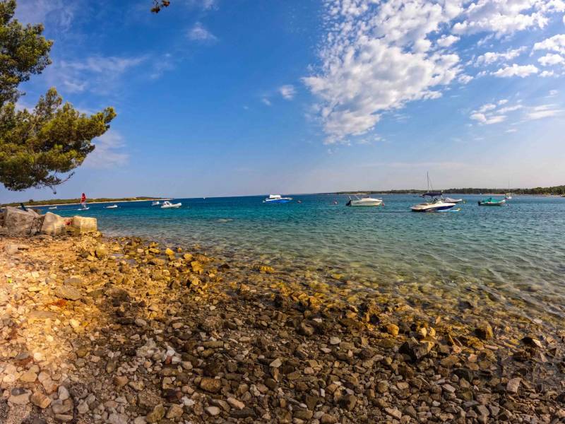- Dla kogo: Dla rodzin, które chcą łączyć plażowanie z wypadami do najpiękniejszego miasta Istrii (Rovinj).