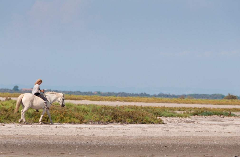 Narodowy Rezerwat Przyrody położony jest w delcie Rodanu, otoczony również wodami Morza Śródziemnego. Park Camargue to naturalne środowisko życia wielu rzadkich gatunków ptaków. Jest to również dom dla największej w Europie kolonii lęgowej flamingów. Poza ptakami w parku możecie napotkać na stada białych, niskich koni rasy camargue lub byków hodowanych na potrzeby corridy. Naszym celem było uniknąć kontaktu z tymi ostatnimi 😉 oraz znalezienie rodzinki flamingów.