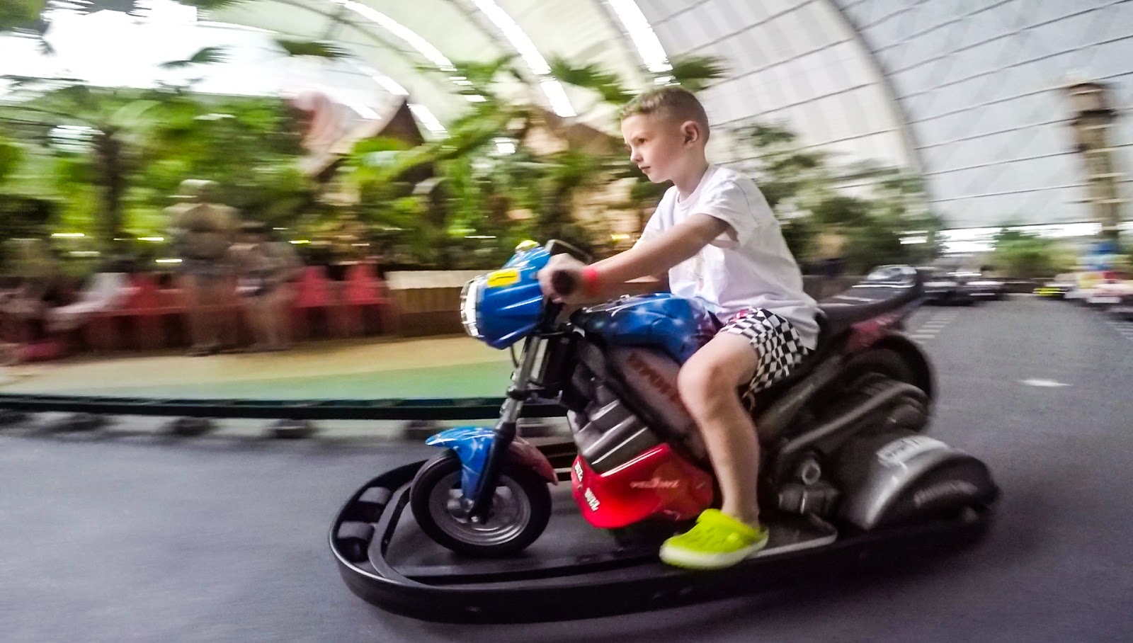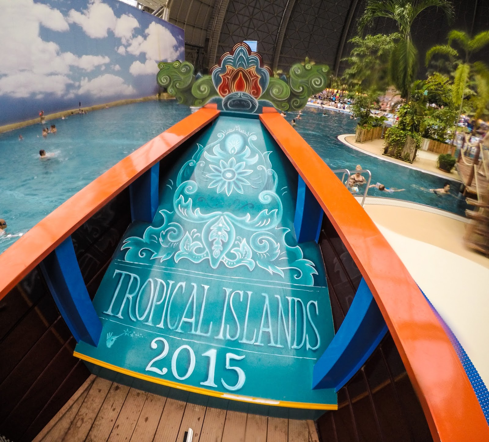 W Tropical Islands spędziliśmy cały dzień, choć po dwóch godzinach pobytu zaliczyliśmy wszystkie wodne atrakcje. Pozostałe godziny spędziliśmy na zjeżdżalniach i na placu zabaw. Cały czas towarzyszyło nam uczucie, że jesteśmy na planie jakiegoś filmu o tropikalnej wyspie 😉 Wszystko jest takie „na niby". Można poudawać, że jest się w lesie tropikalnym, że lata się balonem, że pływa się w morzu nad którym rozłożona jest wielka płachta błękitnego nieba.